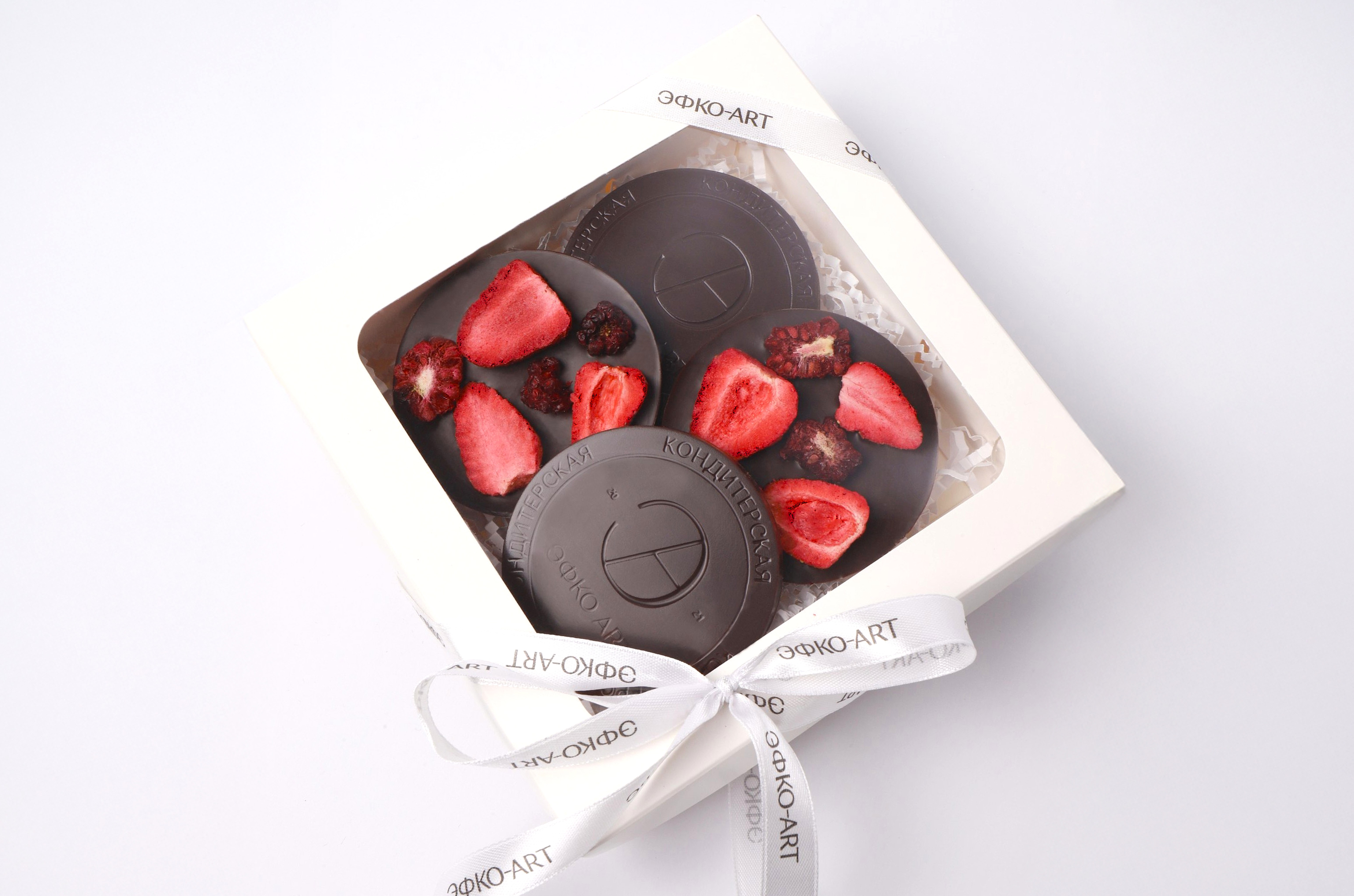 Сахар, какао тёртое, какао-порошок, сублимированные ягоды: клубника, ежевика; эмульгатор соевый лецитин, натуральный ароматизатор «Ваниль»