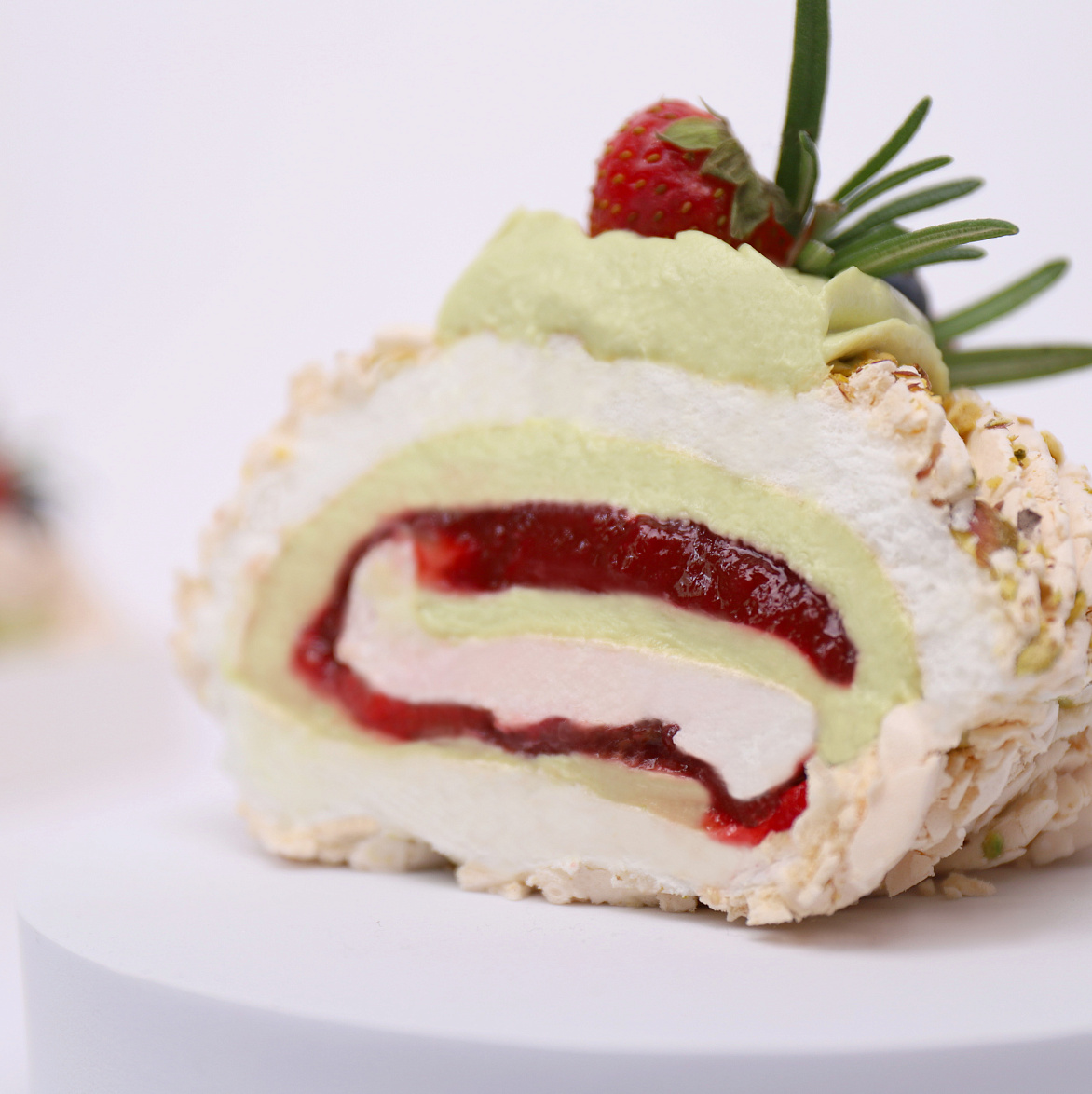 Меренговый рулет с фисташкой и малиной
