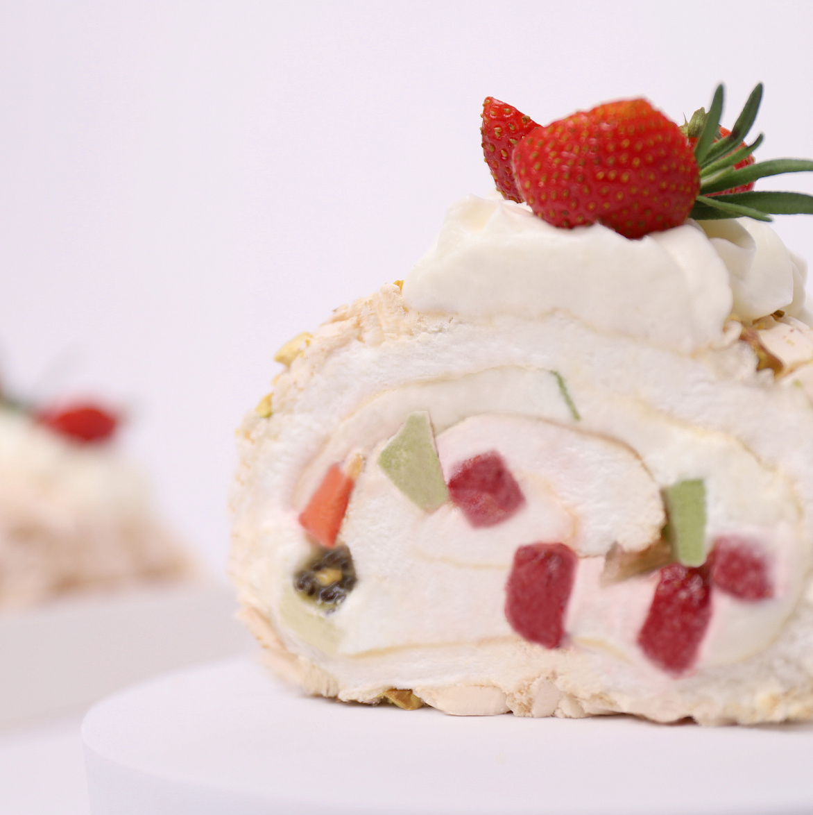 Рулет воздушно-ореховый меренговый со сливочно-сырным кремом с добавлением орехов, ягод и фруктов