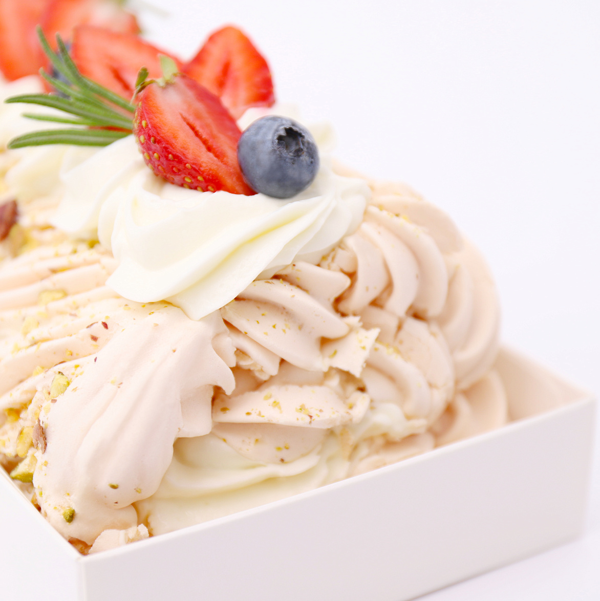 Творожный сыр (нормализованное пастеризованное молоко, бактериальная закваска, молокосвёртывающий фермент микробного происхождения, загуститель модифицированный крахмал, соль, стабилизаторы: камедь рожкового дерева, гуаровая камедь; регулятор кислотности лимонная кислота, вода), сахар, нормализованные и пастеризованные сливки, фрукты, ягоды, розмарин, вода, фисташки, яичный сухой ферментированный белок, кукурузный крахмал, лимонный сок, консервант сорбат калия