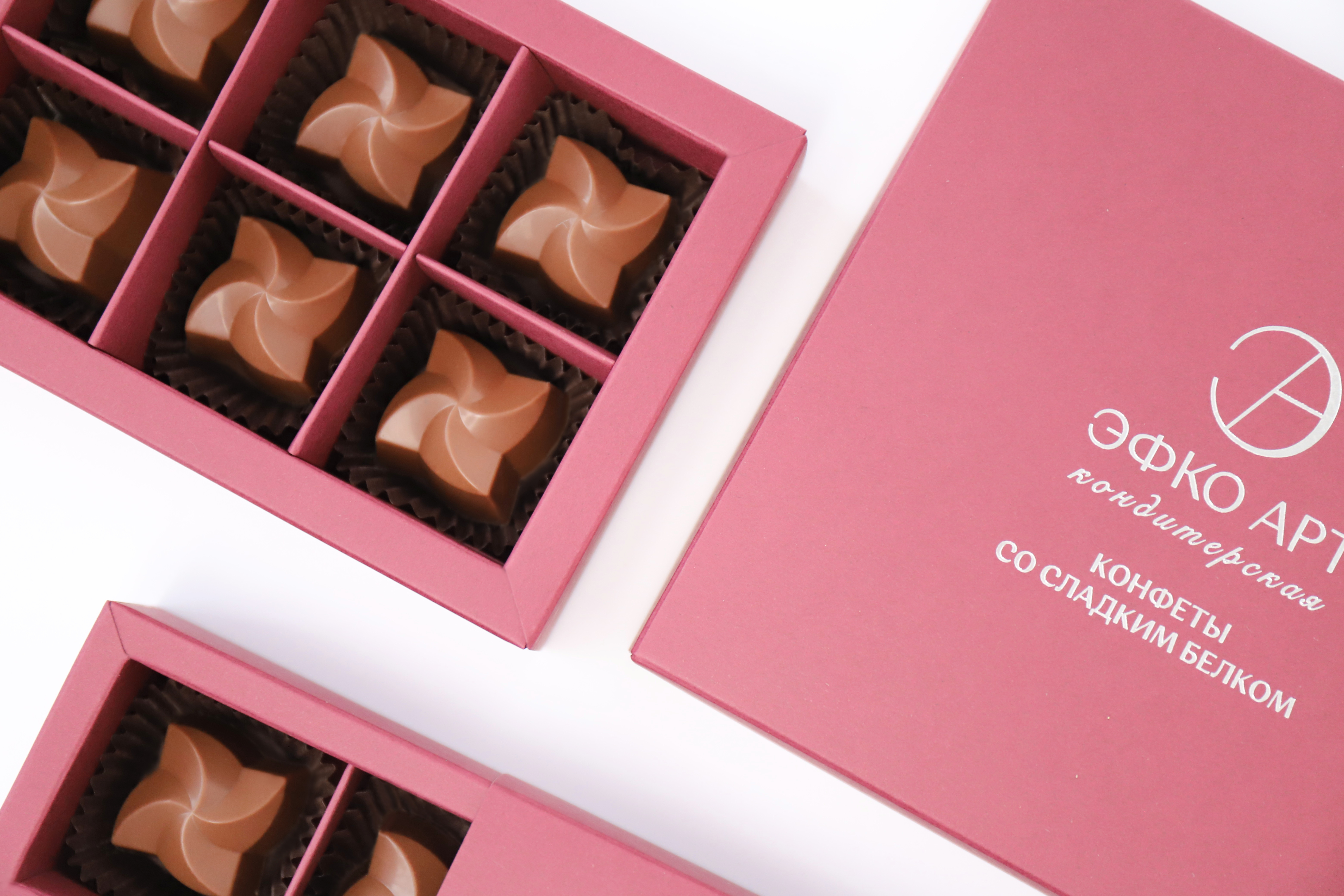 Конфеты без сахара со сладким белком браззеин, который придаёт мягкую и натуральную сладость без лишних калорий